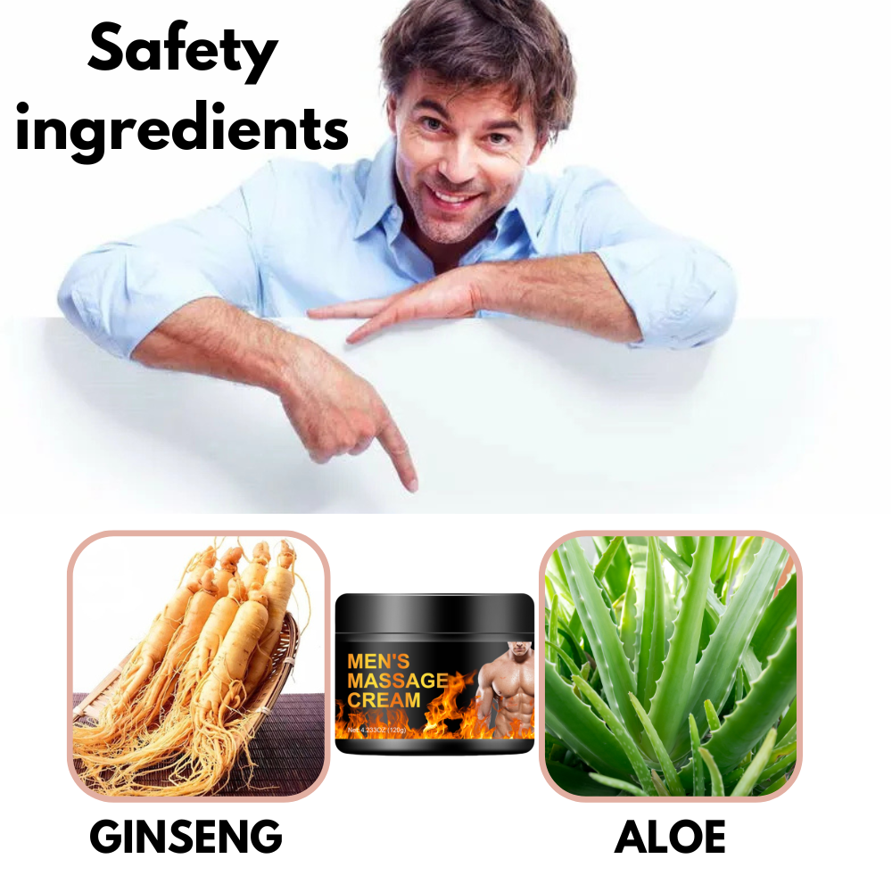 As a product expert, our Men's Massage Cream contains natural ingredients like Ginseng and aloe vera extract that deeply nourish and soften your skin. Experience improved skin texture and heightened personal care benefits. Easily integrate it into your daily routine for a better relationship with your partner. Apply gently to your private parts for quick, residue-free absorption. Say goodbye to greasy residue and hello to a smooth, soft touch.